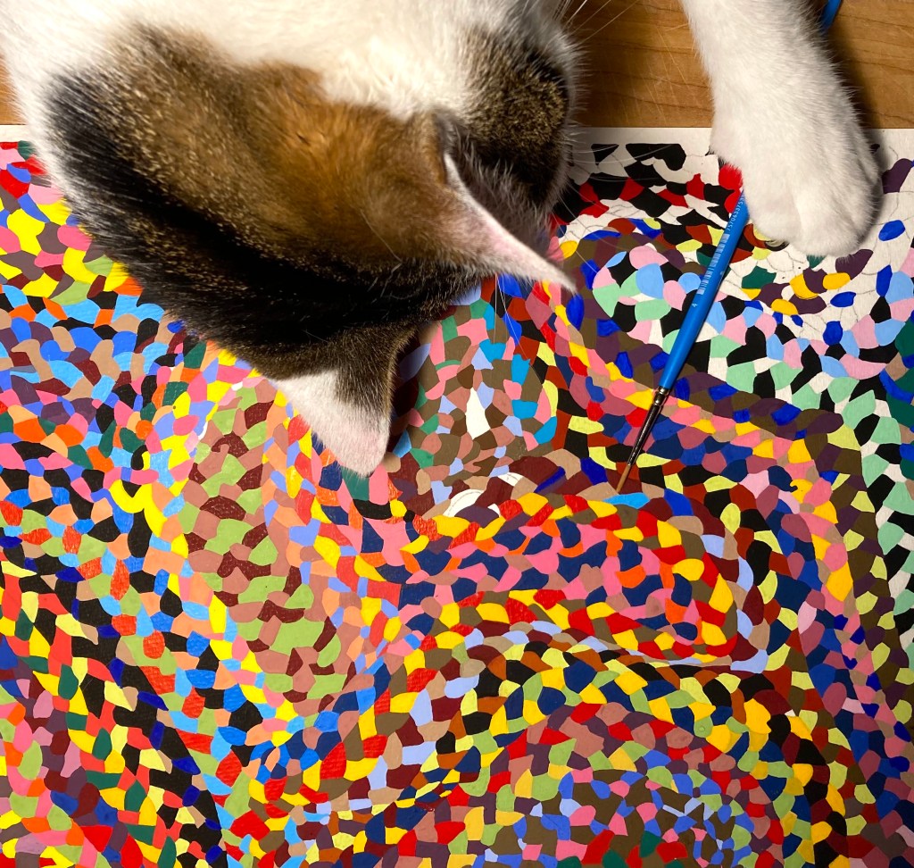 Salvaged and heirloom textiles have long been the material foundation of my work. I am drawn to their associations with domestic life and labor, intimations of bed and body, and capacity to cover and protect. While common cloth, by itself, is somewhat fragile, the acts of binding, knotting, braiding, weaving, and stitching have been used to build, strengthen and transform cloth into new structures for millennia. In my sculptures I combine some of those simple, old processes with equally utilitarian ideas of regenerating discarded clothing, with the aim of producing works that at once retain and transcend those traditions. The paintings are close examinations of pattern, as observed in the sculptures, and in historic objects.